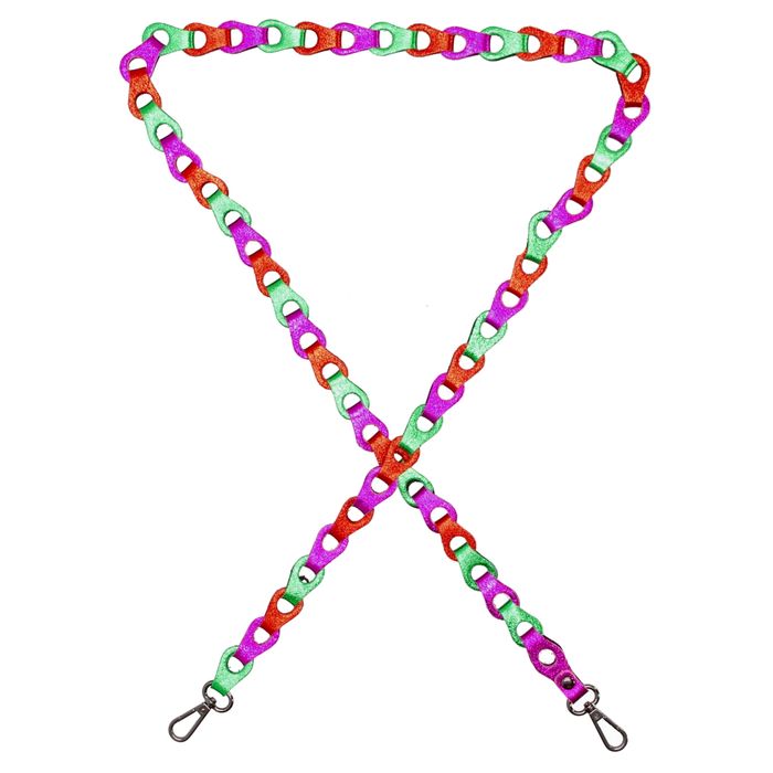 Vrolijk je tas helemaal op met deze leuke schouderband van het merk Charm London! Door de karabijnhaak wissel je deze leukerd makkelijk met de schouderband die nu aan je tas zit. De kleuren van de schouderband wisselen elkaar af, dit geeft een vrolijke look. Wil jij deze mooie schouderband al hebben?