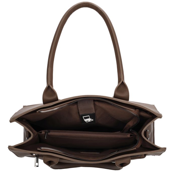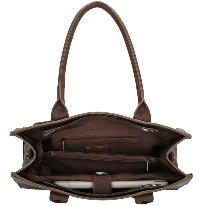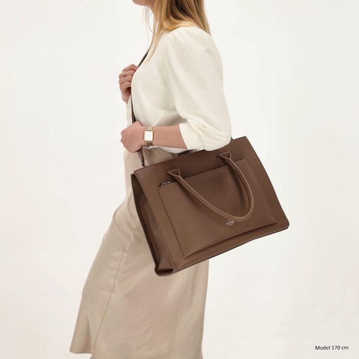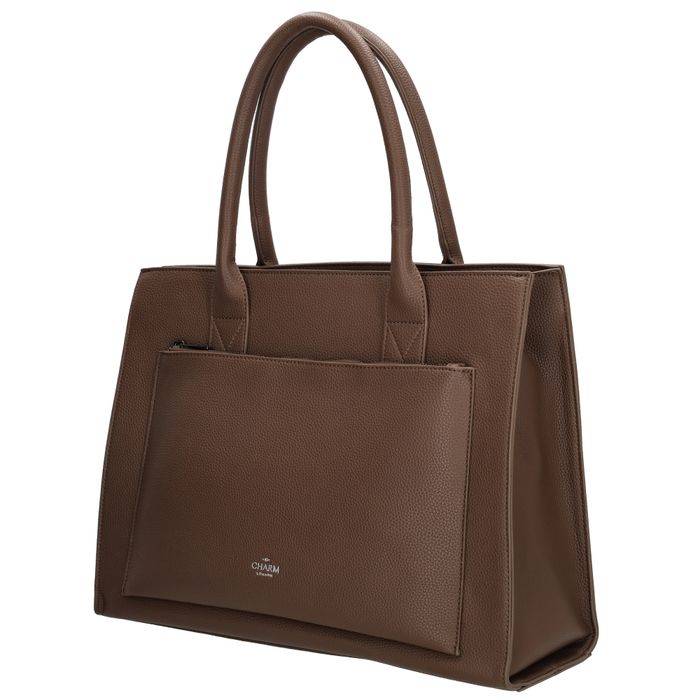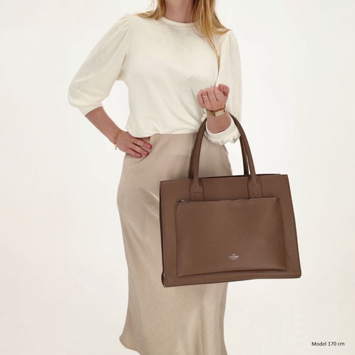 De Charm London Pentonville is een stijlvolle shopper én praktische laptoptas in één, geschikt voor laptops tot 13,3 inch. De tas is voorzien van een gevoerd laptopvak, een tussenritsvak en een klein ritsvak aan de binnenkant om je spullen overzichtelijk op te bergen. De lange schouderbanden zijn comfortabel over de schouder te dragen dankzij het brede ontwerp. Daarnaast wordt de tas geleverd met een verstelbare en afneembare schouderband voor extra draagopties. Aan de voorkant zit nog een handig ritsvak voor items die je snel bij de hand wilt hebben.